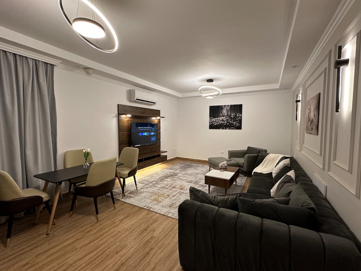 Apartamento moderno y acogedor en el corazón de El Cairo Descubre este elegante apartamento de un dormitorio ubicado en el prestigioso Golden Gates Compound, Mokattam. Diseñado pensando en la comodidad y la elegancia, el alojamiento ofrece un diseño moderno, un espacio de estar abierto y mucha luz natural, perfecto para solteros, parejas o viajeros de negocios.