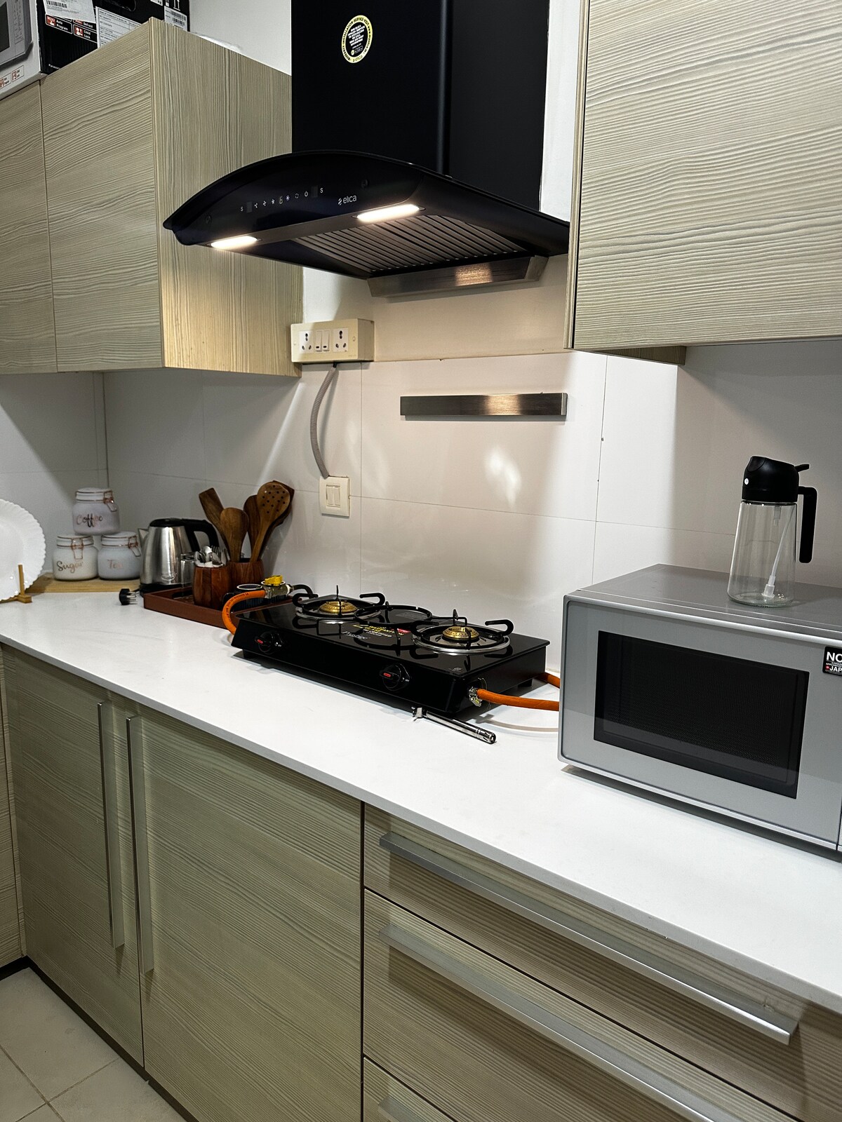 Enjoy a refined stay in this modern 1BHK apartment just 100 meters from Manyata Tech Park, ideal for business travellers and long stays. Designed with clean, contemporary interiors, the space features high-speed Wi-Fi, a smart work-friendly layout, a Juliet window for natural light, and a fully equipped kitchen. Calm, comfortable, and well-connected, it’s the perfect balance of productivity and understated luxury.
