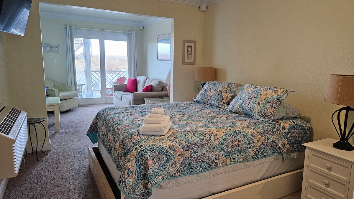 Cuando necesites un lugar para alojarte durante tu visita a Outer Banks, no hay mejor opción que los condominios Surf Side. ¡Nuestra ubicación frente al mar de Nags Head es la opción ideal para los visitantes que realmente buscan aprovechar todo lo que nuestra zona tiene que ofrecer! Cada una de las King Efficiencies tiene capacidad para 4 personas cómodamente. Además de la hermosa vista, también ofrecemos una selección de servicios a nuestros huéspedes, como jacuzzis, piscinas cubiertas y al aire libre y acceso privado a la playa.