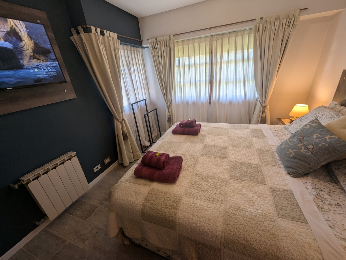 Habitación privada a estrenar con baño privado y desayuno en hermoso y pequeño Bed and Breakfast. Con un bellísimo jardín y ambiente acogedor, un lugar ideal para disfrutar Villa La Angostura y su fantástico entorno natural. Ubicación: 1,5 km del centro de Villa La Angostura, 150 m de la Ruta Nac. 40, 150 m. de Lago Nahuel Huapi. Baño completo, living, comedor, jardín, Wi-Fi, ropa de cama, toallas e inf. turística.