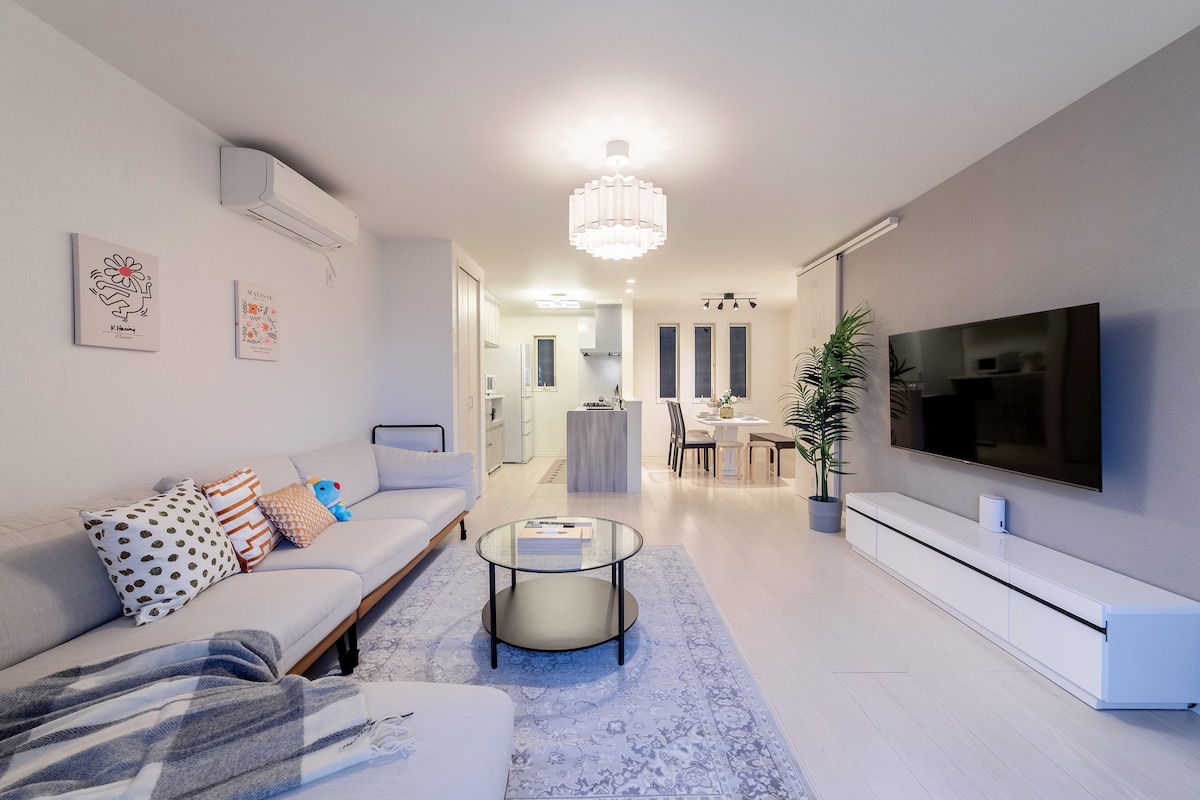 La propiedad, superlimpia, está situada en el centro de la ciudad, pero disfruta de tranquilidad por la noche. Restaurantes, cafeterías, supermercados, a 250 m de JR Una nueva casa de 4 pisos, 175 metros cuadrados, incluye 4 dormitorios, 3 inodoros, 2 baños (una bañera), comedor/sala de estar, gran terraza en la azotea, balcón. Wifi gratis, Netflix, aire acondicionado, lavadora/secadora, toallas, aparcamiento gratuito Nota: Prohibido fumar en el interior!Hay obras de construcción alrededor, comienzan de 8:00 a. m. a 5:00 p. m. durante los días laborables~🙃 Super tranquilo por la noche~Hassle Free Roof Deck BBQ😊
