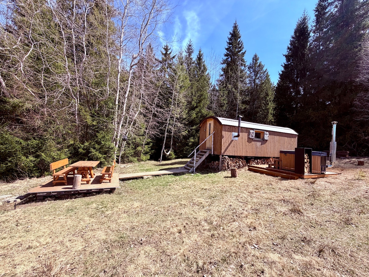 ¡Experimenta el encanto de la soledad en medio de la naturaleza! Rodeada de bosques y prados, la casa de pastor ofrece un escape de la civilización, sin electricidad, con una estufa a leña y una letrina. Por la mañana, el canto de los pájaros te despertará, durante el día el sol y el olor de las hierbas, el silencio del bosque por la tarde. Recoge setas, respira aire fresco y relájate donde el tiempo es inútil.