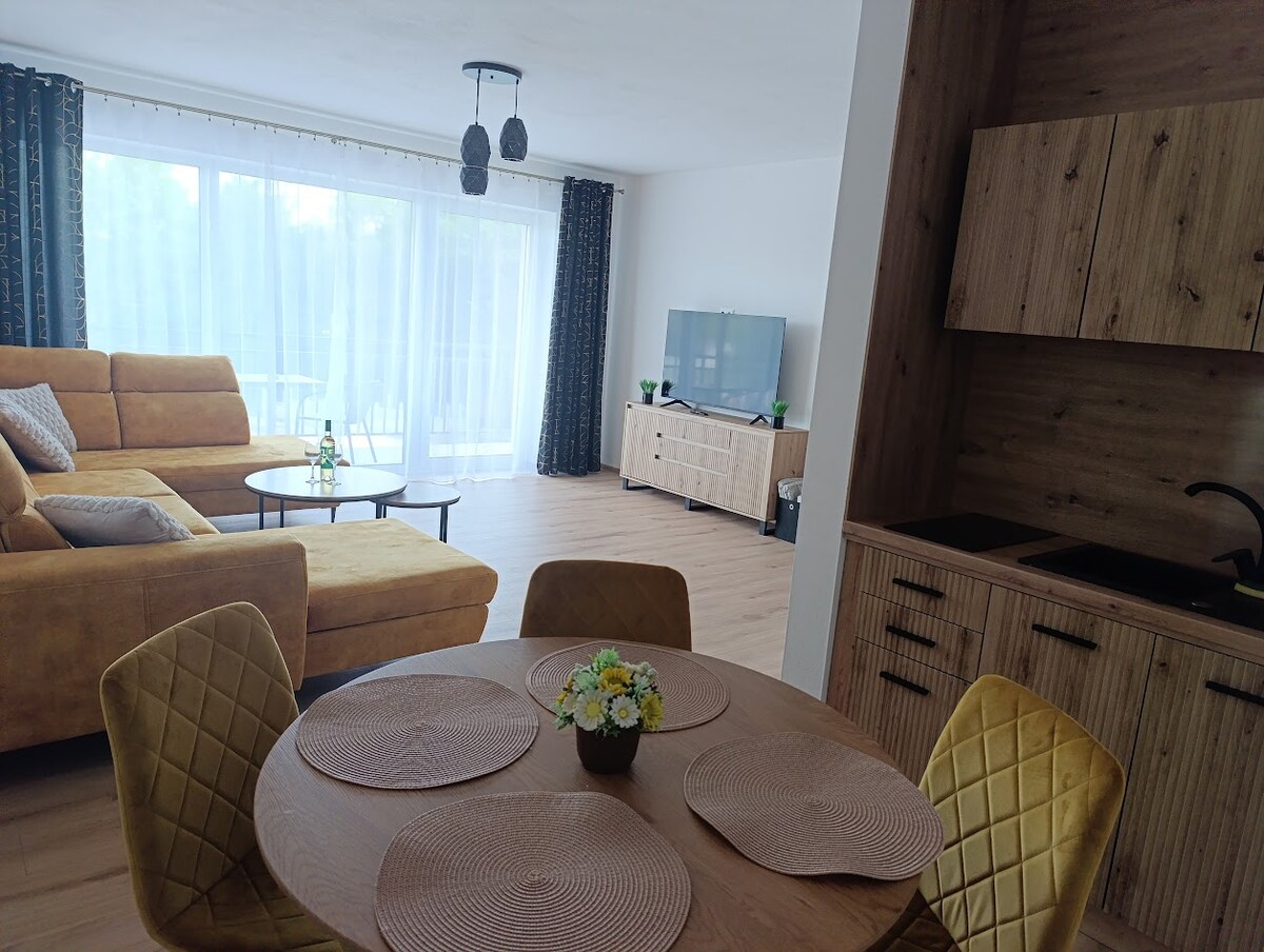 Alojamiento a unos 200 m del centro del pueblo. Adecuado tanto para familias como para parejas. Cocina totalmente equipada. Aparcamiento junto al edificio. Terraza, parrilla, chimenea y parque infantil al aire libre, sauna. Posibilidad de alquilar una bicicleta eléctrica en el edificio. 😁