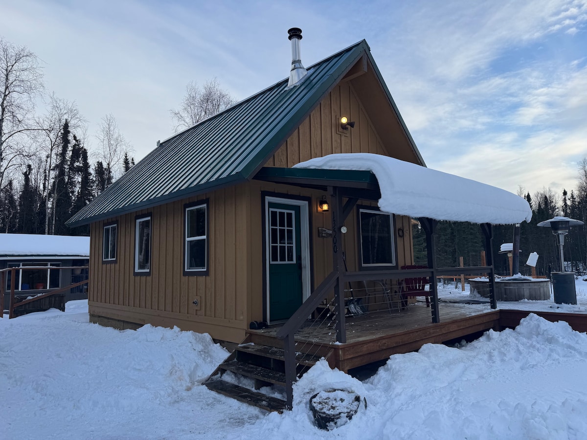Verdadera vida de estilo cabaña con una cama tamaño queen en el dormitorio, una cama completa en el área del loft y una cama tamaño queen extraíble (la más firme y cómoda en la que hayas dormido) en la planta principal. Cerca del aeropuerto de Wasilla, el centro deportivo Menard y Parks Hwy, perfecto para todos los torneos y espectáculos en el Menard. Ideal para parejas, aventureros solitarios, viajeros de negocios y familias. También contamos con otras 4 cabañas adyacentes en otros anuncios para estancias en grupo.