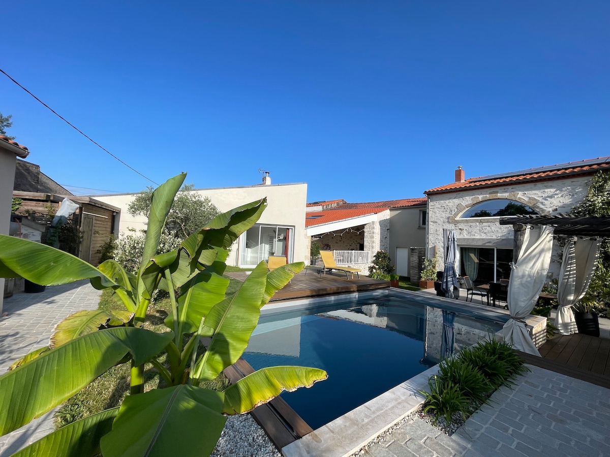 A su llegada, descubrirá una luminosa y cómoda casa de campo con una superficie de 320 m2. Se encuentra en una zona tranquila con un jardín de 3 hectáreas (sin cerrar) con una gran piscina climatizada, esta está asegurada por una lona de barras homologada. Cocina, salón, comedor, 7 dormitorios de los cuales 2 dobles (posibilidad de otros 2 dobles) y 3 baños y ducha. Todos los servicios a menos de 5 minutos, 15 minutos de Nantes, 50 minutos de las playas y 1 hora de Le Puy du Fou.