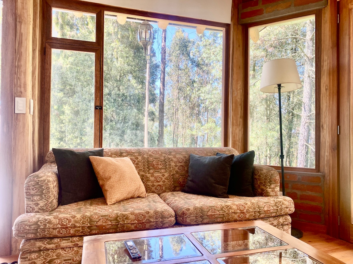 Una cabaña ideal para compartir con grandes grupos familiares y amigos. Sus extensos ventanales permiten mirar las montañas y la neblina desde cualquier lugar de su interior. No hay luz eléctrica, se ilumina con luz de velas, velones y lámparas de panel solar, lo que hace mágica la experiencia en la noche. Está equipada con una tina de agua caliente, chimenea, sala, comedor, cocina, asadero interno, muy cerca de las Reservas Cayambe Coca y Antisana.