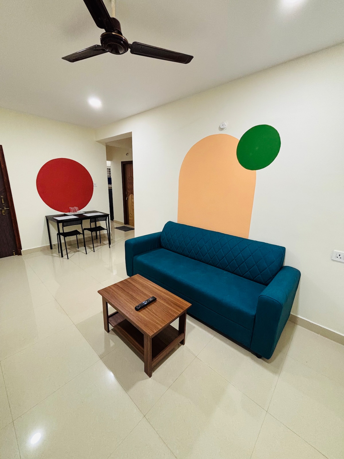 Relájate con el ejecutivo y es un lugar tranquilo para hospedarte. El lugar céntrico te da la bienvenida a este apartamento de 2 bhk. Una vez dentro, el televisor 4k y el sofá ubicados en el pasillo lo hacen ideal para películas y relajación. La conexión wifi perfecta es perfecta para tu trabajo. Tienes una cocina sencilla y útil y una mesa de comedor en el lado izquierdo Amplio dormitorio principal con cama tamaño king y el segundo dormitorio tiene una cama tamaño queen. Ambos tienen baños adjuntos con aire acondicionado. Ambos dormitorios tienen aire acondicionado frío.