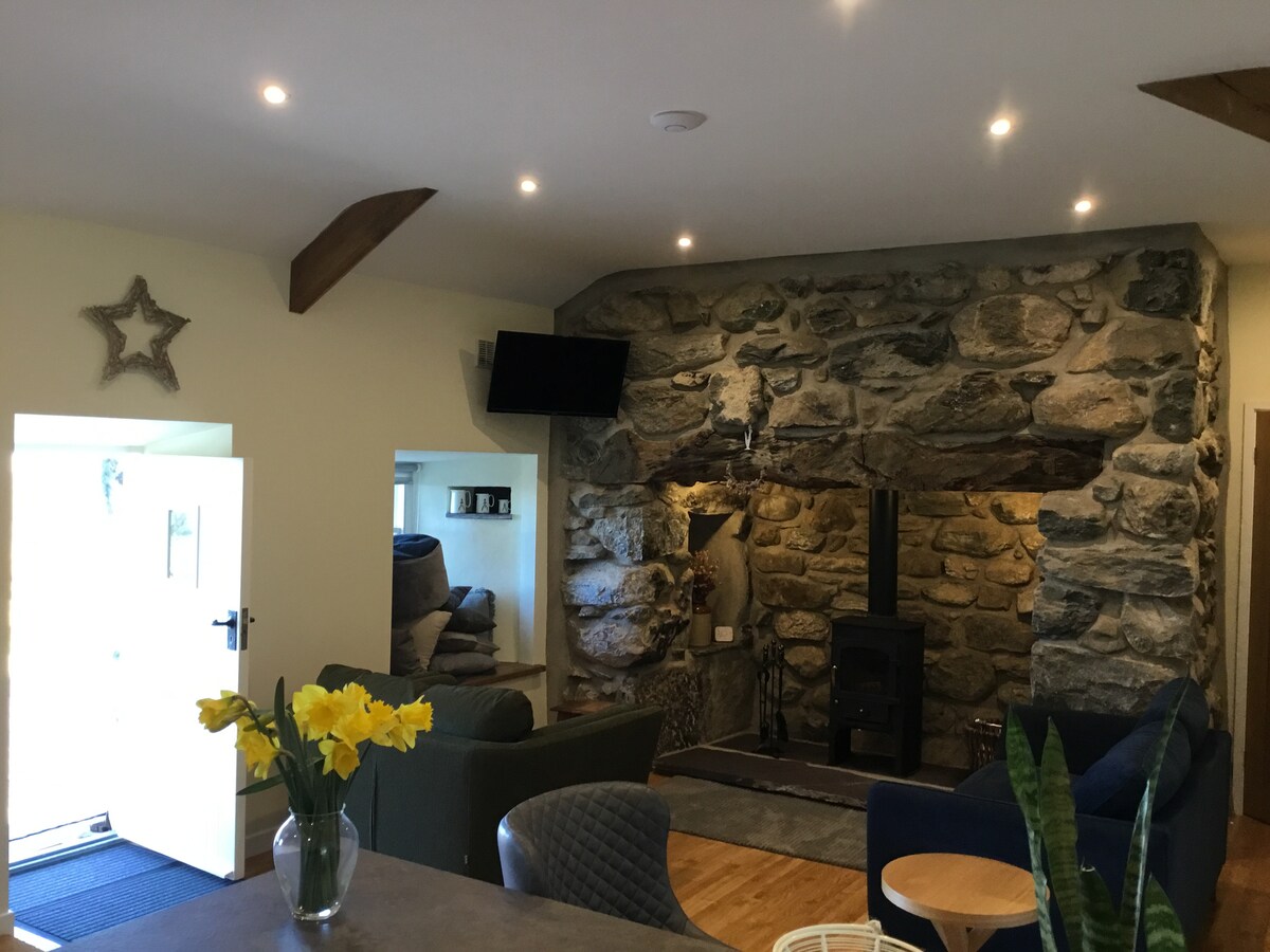 ¡Te aseguramos una cálida bienvenida a este pequeño granero bellamente restaurado, ahora una acogedora casa de campo con uso exclusivo de jacuzzi durante todo el año! Impresionante ubicación que limita con Snowdonia (a 10 minutos a pie del parque). En los días despejados, Snowdon, Yr Wyddfa, se ve a la perfección. Carga gratuita para coches eléctricos. ¡Cerca de castillos, la península de Llyn, una costa preciosa, a un paso de Anglesey y mucho más! Adecuado para parejas/una persona. ¡Ven, mímate en un descanso reparador, explora una zona gloriosa, el norte de Gales!