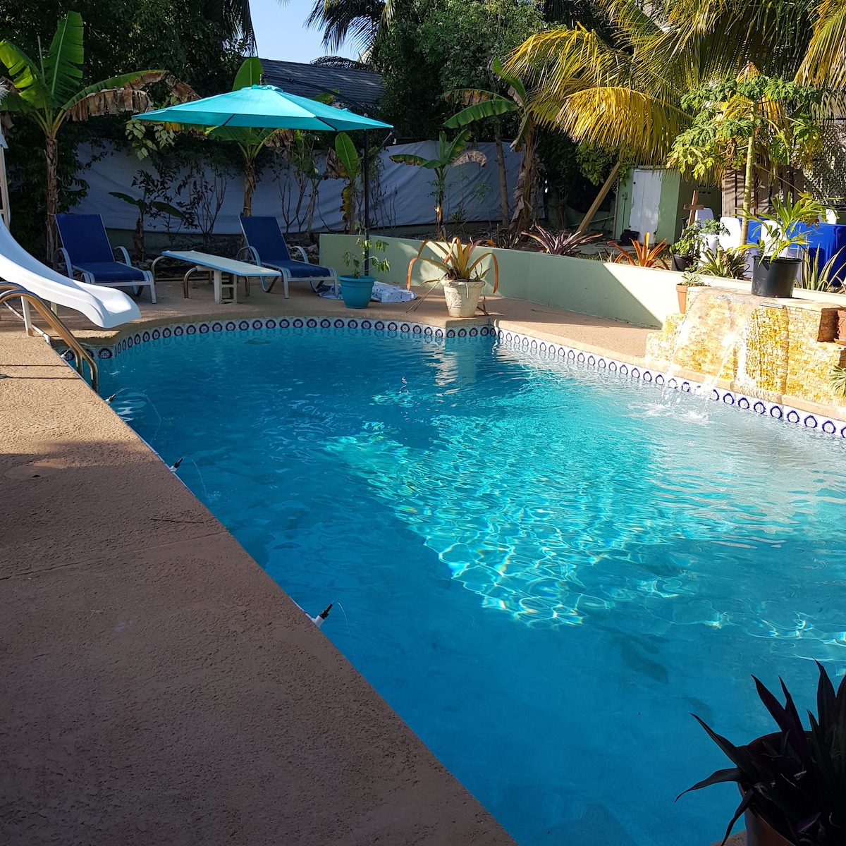 Esta encantadora suite de 1 dormitorio, ubicada en un paraíso tropical, es 1 de 2 unidades separadas en una casa de campo para un máximo de 2 huéspedes adultos (el propietario vive en la propiedad). Incluye cama tamaño queen, 1 baño, cocina pequeña, piscina con fuente de agua, casa del árbol, hamacas, entrada privada para huéspedes con código de acceso de seguridad y aparcamiento gratuito. A 7 minutos en coche del aeropuerto, a 5 minutos en coche de la playa más cercana, a 5 minutos a pie de restaurantes, tienda de comestibles, farmacia y cajero automático. Ideal para parejas, viajeros solitarios o amigos. Se recomienda alquilar un coche.