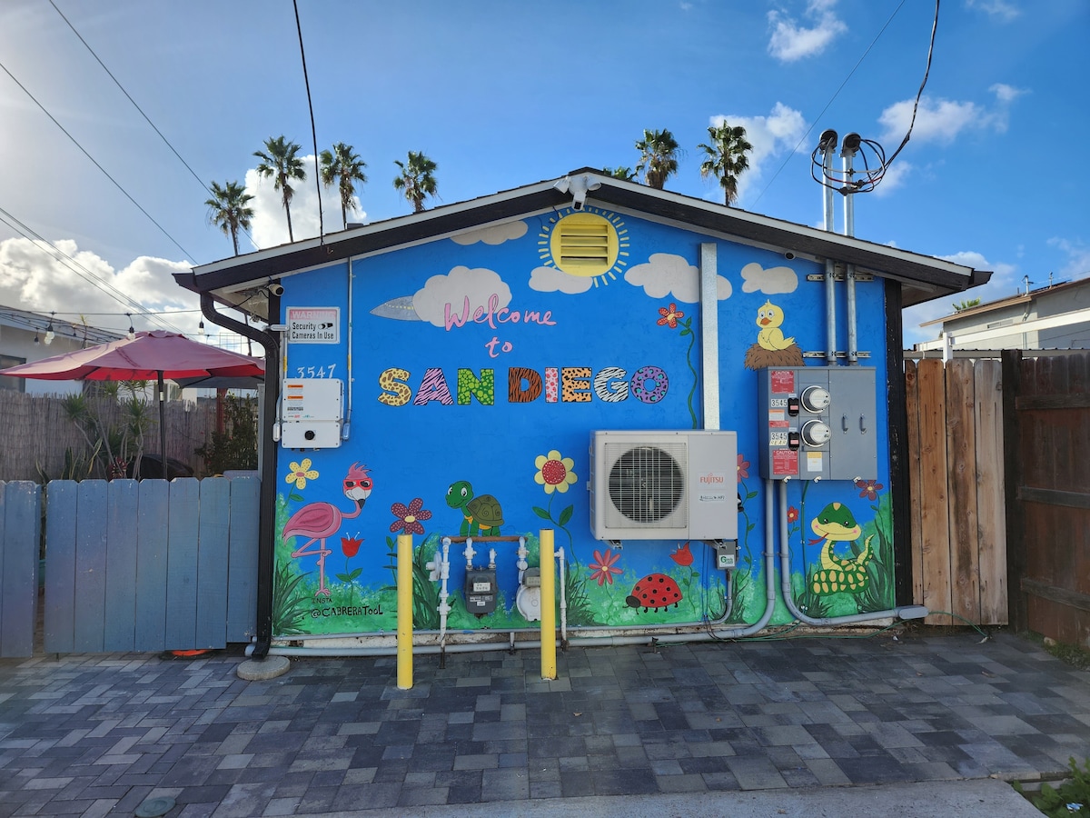 Este bungalow privado se encuentra detrás de una casa principal en el hermoso barrio de El Cerrito (zona universitaria). Esta es una habitación tipo estudio con baño, cama y sala de estar. Hay una entrada lateral privada y un amplio aparcamiento. Los huéspedes tendrán acceso completo al patio trasero, que incluye una zona de descanso para disfrutar del hermoso clima de San Diego. La ubicación es ideal: A 1 milla de SDSU. A 7 millas del centro de San Diego. A 10-15 millas de las playas locales A 5 millas de North Park. Todas las ubicaciones son un Uber asequible.