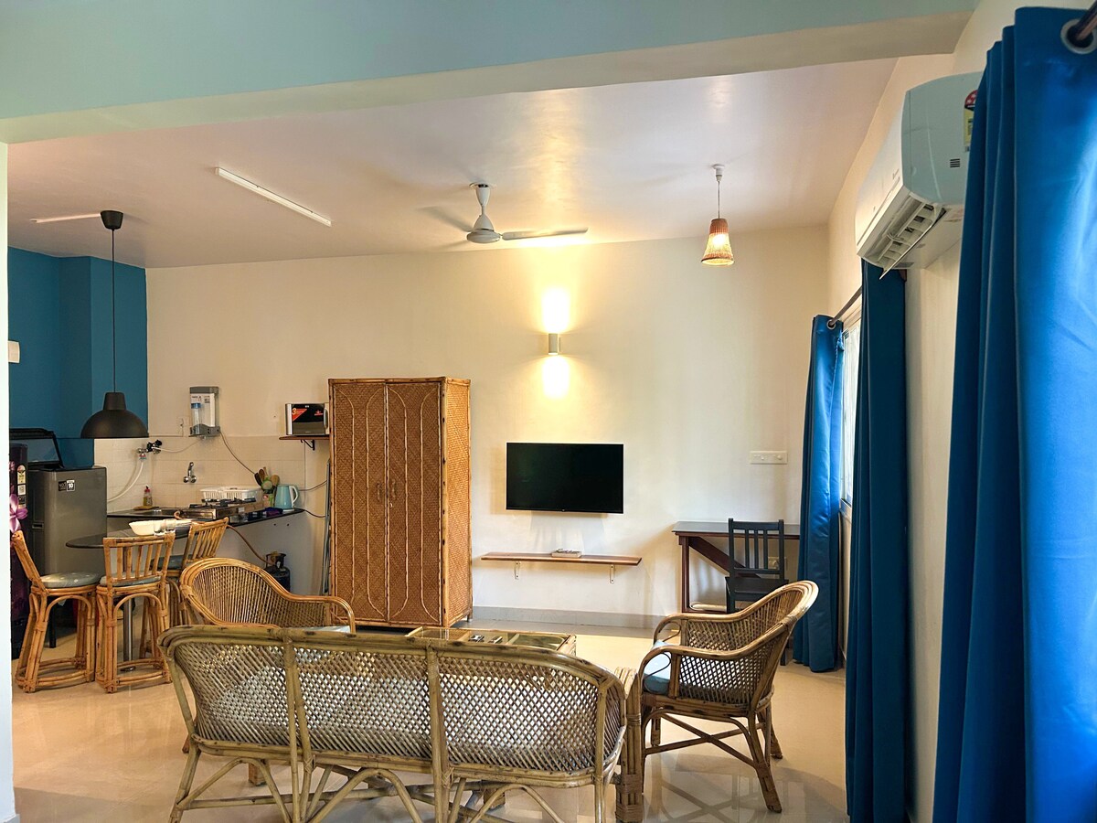 Relájate y desconecta en este espacioso y sereno espacio que está diseñado estéticamente teniendo en cuenta todas las vibraciones de la playa. Ubicado en una calle tranquila rodeada de vegetación y frente a un hotel de 5 estrellas. El apartamento está a 5 minutos en coche de una de las mejores playas de SouthGoa. Equipado con todos los electrodomésticos y una cocina totalmente funcional, puedes preparar fácilmente una comida. El apartamento también tiene energía de respaldo en caso de cortes de energía para que tu trabajo desde casa no se vea interrumpido. Equipado con conexión wifi de alta velocidad de 150 MBPS para tu necesidad de trabajo desde casa.