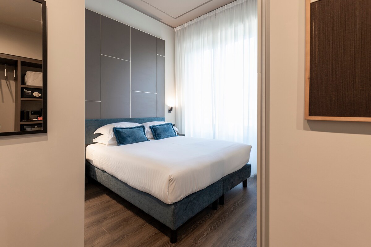 A pocos minutos del aeropuerto de Milán Linate, Fasthotel Linate ofrece habitaciones estándar con un diseño moderno y tonos suaves y brillantes. Cada habitación cuenta con una cama tamaño king o dos camas individuales, aire acondicionado, TV LCD, wifi, caja fuerte, escritorio y secador de pelo. El baño incluye una ducha a ras de suelo, inodoro y bidé. Se incluye un desayuno generoso. Nota: Las ventanas no se abren por motivos de seguridad y control de la temperatura. El hotel no utiliza plásticos y cuenta con dispensadores de artículos de tocador rellenables.