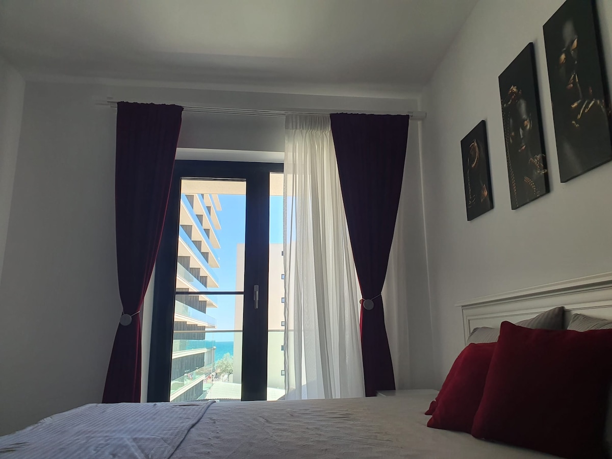 A solo 70 metros de la playa, con una relajante vista al mar, este moderno apartamento en Mamaia Nord es el refugio ideal para unas vacaciones inolvidables. Luminoso, elegante y totalmente equipado: todo lo que necesitas para sentir la brisa marina y escuchar las olas desde el balcón.