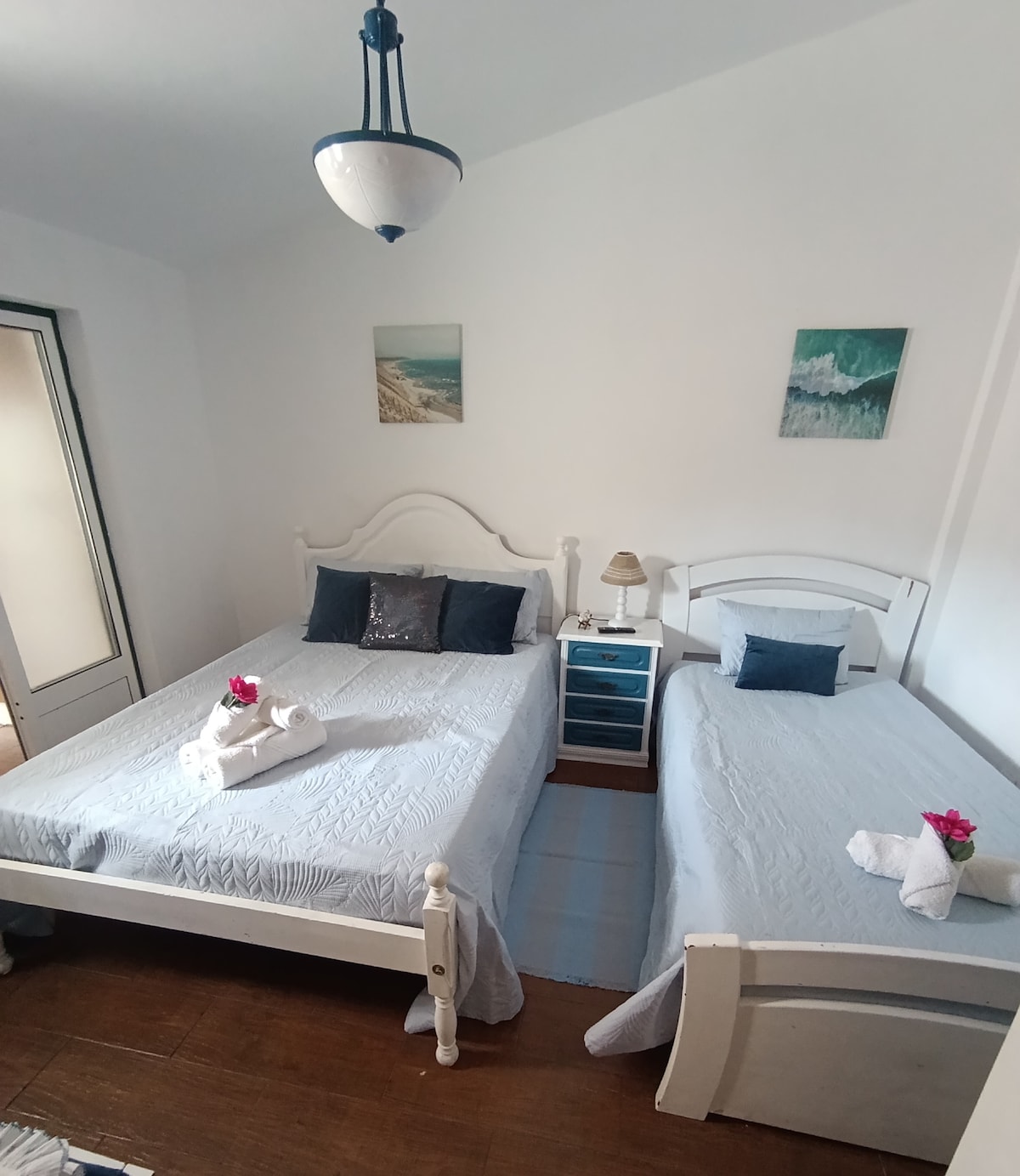 Bienvenido a «Casa na onda - Liberdade», casa de 2 plantas, en una calle peatonal del centro de Nazaré, pueblo auténtico. Terraza con vistas al mar, a 30 metros de la playa. Casa ideal para 1 pareja + 2 solteros (1 habitación doble + un espacio de habitación abierta con 2 camas individuales). Sábanas + toallas incluidas. 2 baños, cocina equipada, wifi, aire acondicionado, equipo de playa. Aparcamiento y toallas de playa disponibles con suplemento (contacte con nosotros). ¡Hasta pronto en «Casa na onda - Liberdade»!