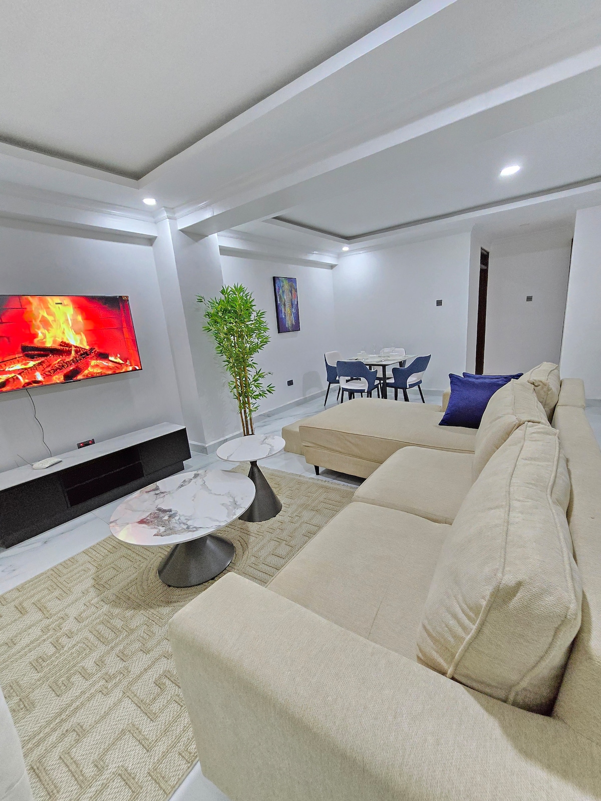 Este hermoso y moderno apartamento de dos dormitorios con baño se encuentra justo en el centro de Kisumu CBD (centro comercial Tuffoam). Está rodeado de hermosos centros comerciales, bancos, supermercados y hoteles como el Imperial Sarova, el hotel Acacia, el centro comercial Westend y el hotel Kisumu. El apartamento está situado en el tercer piso, al que se puede acceder a través del ascensor, y tiene un generador de respaldo. Está situado a 6 minutos en coche del lago.