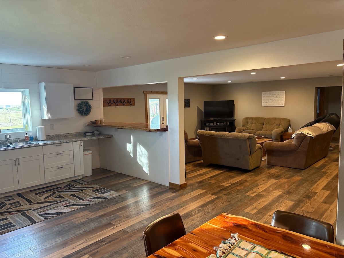 En este alojamiento se respira tranquilidad: ¡relájate con toda la familia! Es la ubicación perfecta tanto para el lago Mac como para Ogallala. Este es un apartamento de planta abierta de 2 dormitorios y 1 baño estilo sótano con salida. Capacidad para más de 7 personas. Hemos añadido un nuevo sillón de masaje para que tu estancia sea aún más relajante. Disfrutarás de las vistas al campo y del espacio abierto. Tenemos burros y perros a los que les encanta que los mimen. Si viajas con caballos, ¡también tenemos un lugar para ellos! No se admiten mascotas ni se permite fumar.