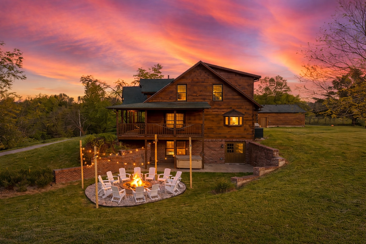 🏡 Bourbon Trail Hideaway – ¡Una espaciosa cabaña de madera 5BR, 3.5BA en 6 acres privados, a solo 9 minutos de Jim Beam! 🍂 Combinando el encanto rústico con las comodidades modernas, este refugio cuenta con un NUEVO salón clandestino, jacuzzi, chimenea, terrazas envolventes, juegos de arcade y una cocina bien surtida. Disfruta de impresionantes puestas de sol, wifi rápido, lujosos asientos, televisores inteligentes y un ambiente acogedor, además de camas de lujo, baño tipo spa y mucho espacio para relajarse o entretenerse. ¡Ideal para grupos, parejas y amantes del bourbon! 🥃✨
