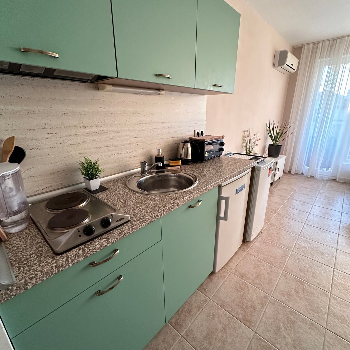 If you’re looking for a peaceful getaway where you can relax, cool off, and enjoy a drink by the pool, my place is the perfect choice. The balcony apartment offers a partial Sea View, high-speed Wi-Fi, and is located in a quiet neighborhood of Sunny Beach—only 650 meters from the sandy beach and easily reached on foot.