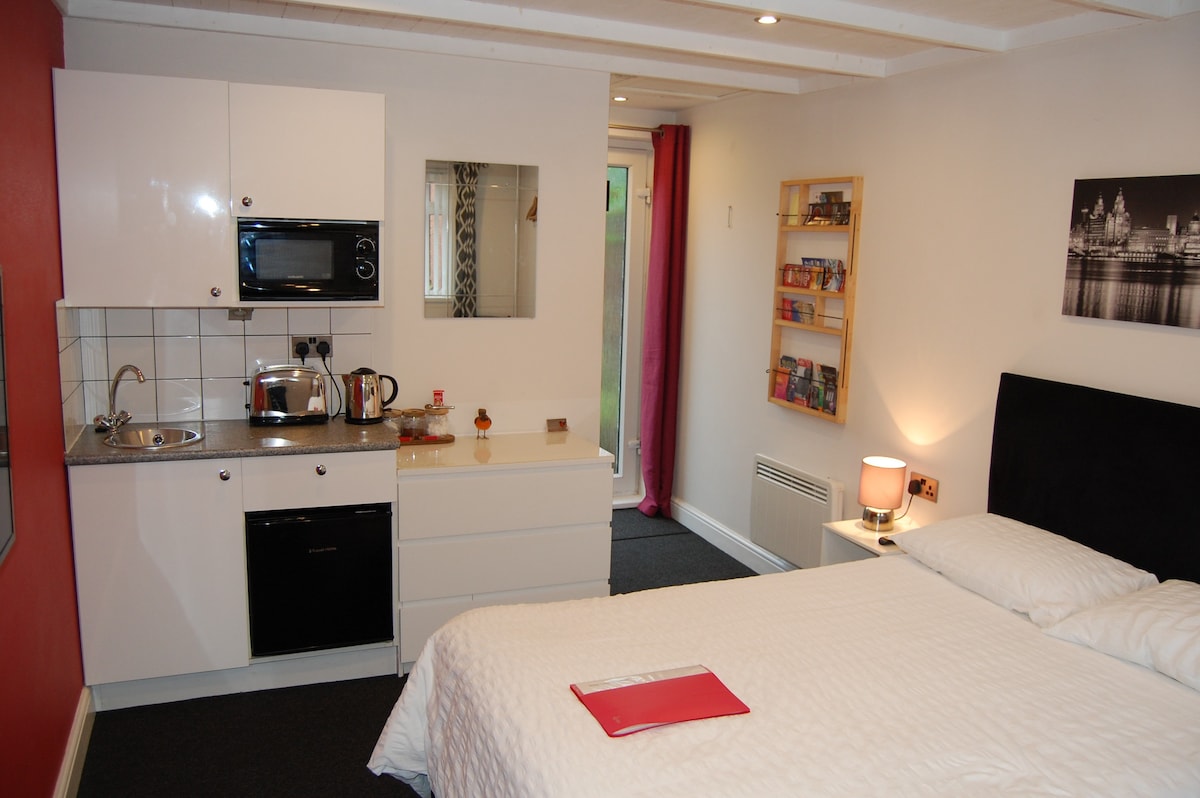 Un estudio de nueva construcción (2021) para visitantes (individuales o parejas) en el área del sur de Liverpool con acceso a enlaces de transporte y atracciones turísticas locales. Novedad para el 23, cargador de vehículos eléctricos disponible durante la noche (se paga localmente). El estudio cuenta con todo lo necesario para una estancia corta (de negocios o de placer): cama tamaño king, espacio de trabajo, armario y baño privado. Wifi y llegada autónoma incluidos. A poca distancia a pie de restaurantes, bares, tiendas locales, Hope University y Lime Pictures.