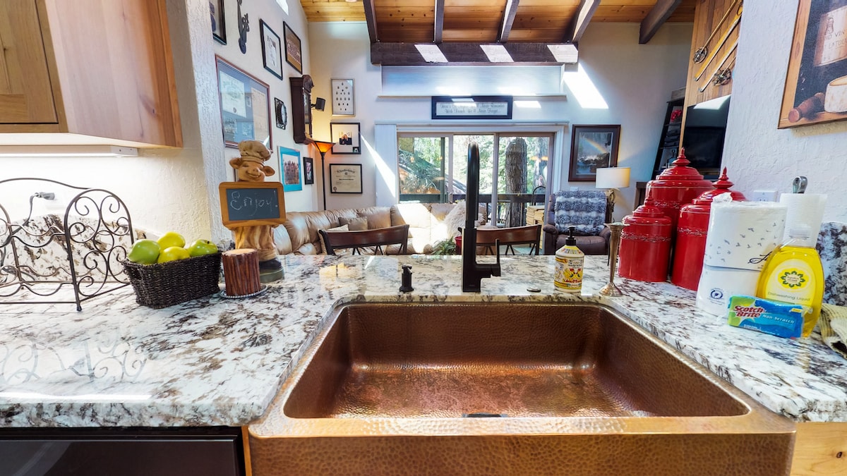 All the comforts of home await you in this true upscale mountain getaway nestled in the pines of Donner Summit. Gorgeously updated kitchen, hot tub, wood burning fireplace, and large deck +bbq in summer. Just steps from X country skiing, ice skating, sledding and close to 3 ski resorts (Sugar Bowl), this location cannot be beat for a short getaway or a place to remotely work. In summer, it's short stroll to the lake for a paddle and swim or explore the local trails, lakes, and rivers.