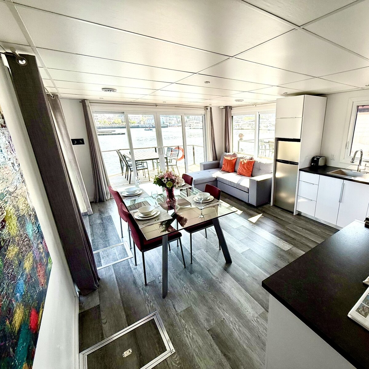 EL ESTUDIO HÉBERGEMENTS FLOTTANTS te ofrece una experiencia única de alojamiento urbano de alta gama en casas flotantes en el sitio del puerto deportivo de Quebec. Anclado en el corazón del distrito histórico y turístico de Quebec, en la cuenca Louise, el puerto deportivo de Quebec goza de una ubicación ideal. Desde el distrito de Petit Champlain hasta las murallas de la ciudad vieja, se encuentra a pocos pasos de las principales atracciones de la ciudad, como restaurantes, museos, etc. CITQ: 310105.