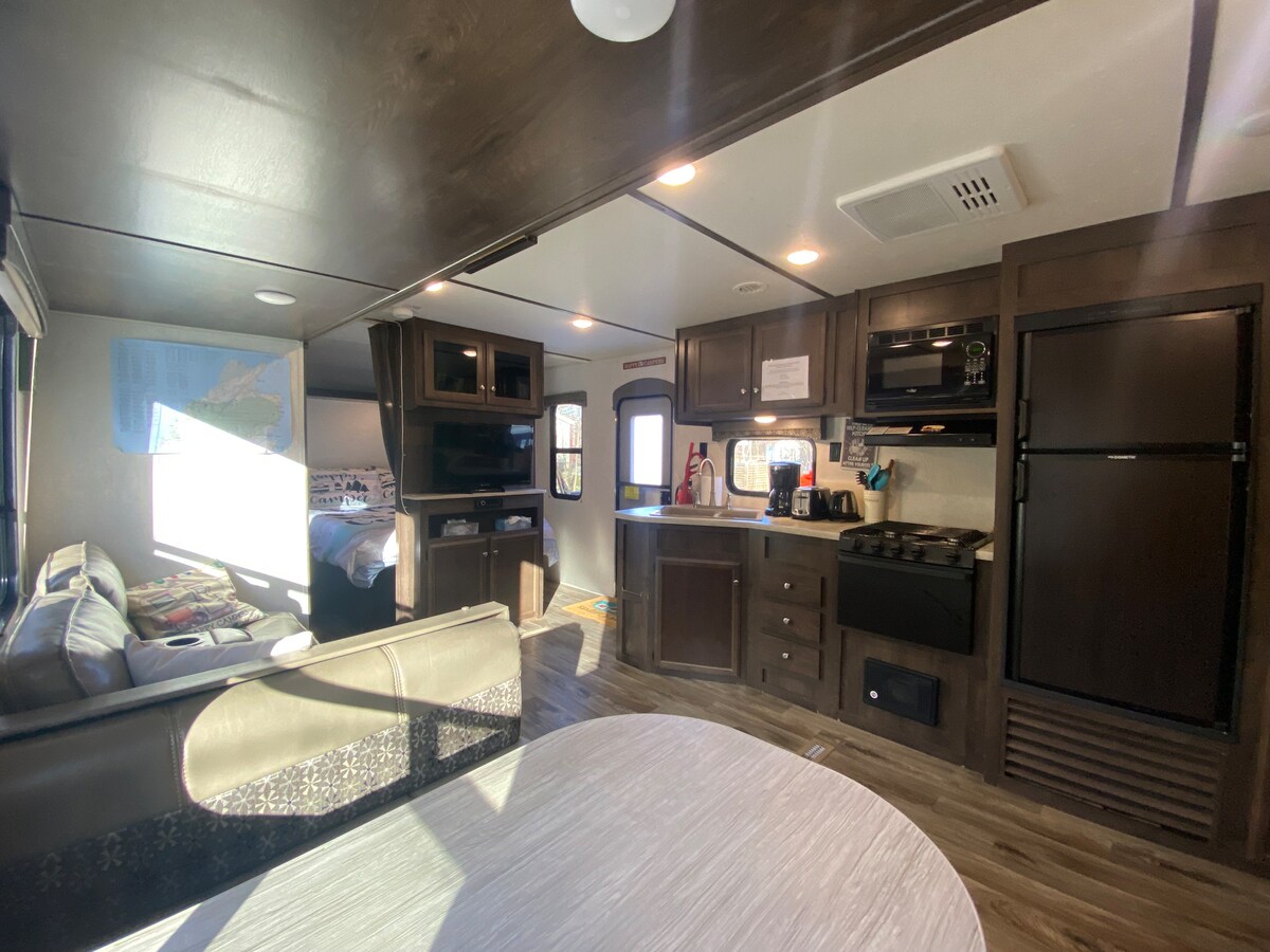 ¡Bienvenido a nuestro hermoso Airbnb! Unidad n.º 3 en nuestra propiedad con vistas al mar, a la montaña y al atardecer en nuestra propiedad privada compartida con nuestros otros alojamientos. Este Salem Cruise Lite de 20 pies cuenta con 1 cama doble, 1 cama plegable con 1 baño, barbacoa, comedor al aire libre en una gran cubierta con asientos al aire libre y mesa de comedor. Ofrecemos la capacidad de desconectar del mundo y disfrutar de la belleza de la naturaleza sin las distracciones de la televisión o el WIFI.