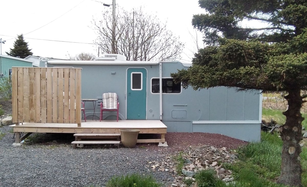 Autocaravana bellamente renovada a poca distancia a pie de las magníficas playas/rutas de senderismo de Salmon Cove. Despiértate con una sinfonía de pájaros en un camping privado y arbolado. Vive la aventura en una minicasa totalmente equipada y acogedora con todas las comodidades. Pasea por la arena interminable y haz surf donde un río de agua dulce se encuentra con el océano. Camina por el Sendero de las Águilas. Disfruta de una gran cantidad de lugares para recoger bayas. Echa el anzuelo en Harry's Pond. Este raro hallazgo está a solo 75 minutos de St. John's y a 10 minutos de Carbonear.