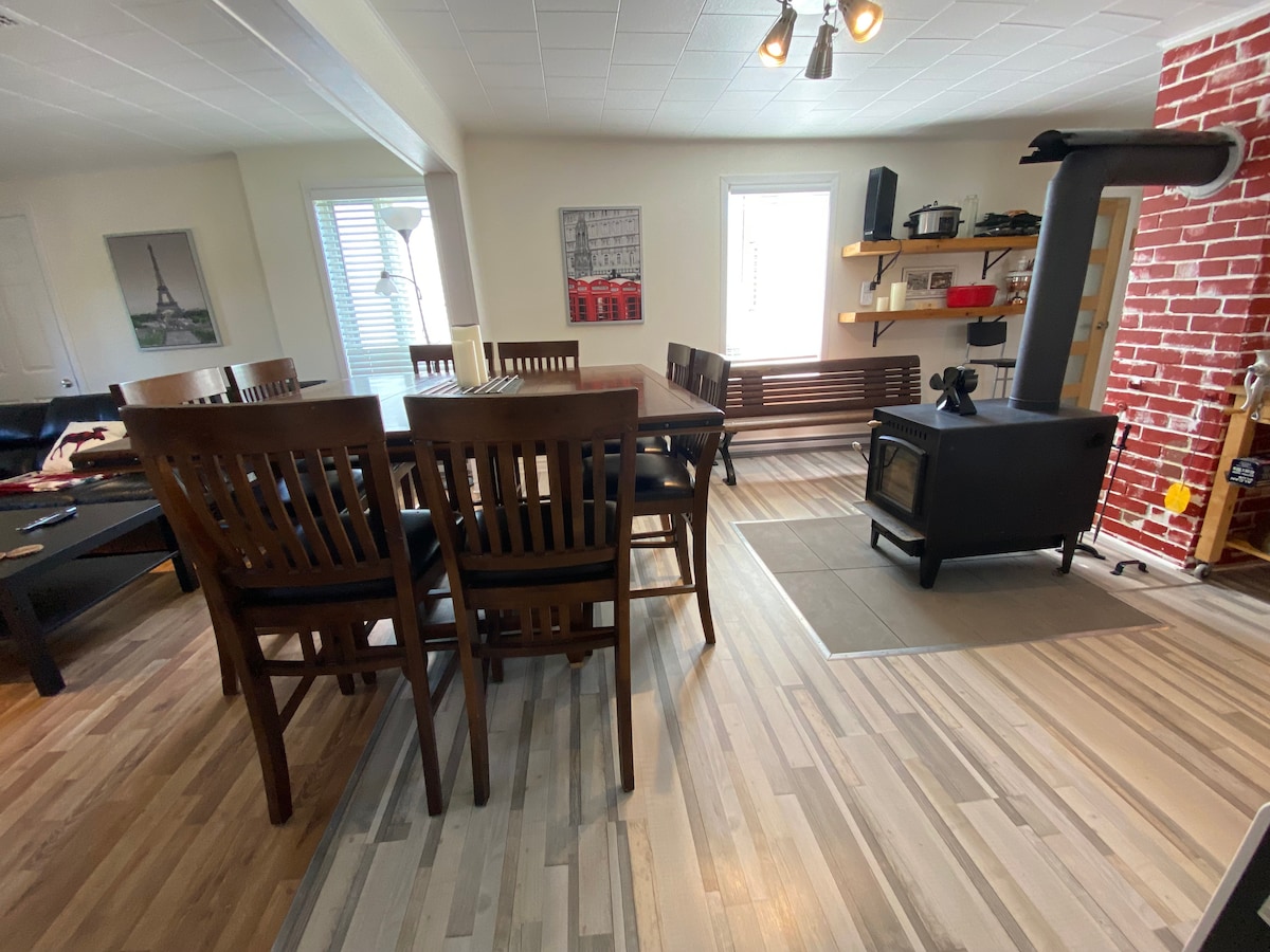 Welcome to your perfect, private, cozy, family friendly, newly renovated, four season, modern farmhouse, for a large family, or two, or group. King bed on main level. This home overlooks the Kouchibouguac River, where you can canoe, kayak or boat. The entertainers deck stairs lead you to the custom made fire pit, get your s’mores & hot chocolate ready & star gaze. New Nordic Spa for your health and enjoyment. Please ask you host for details: Hot tub, cold plunge and sauna close to the property.