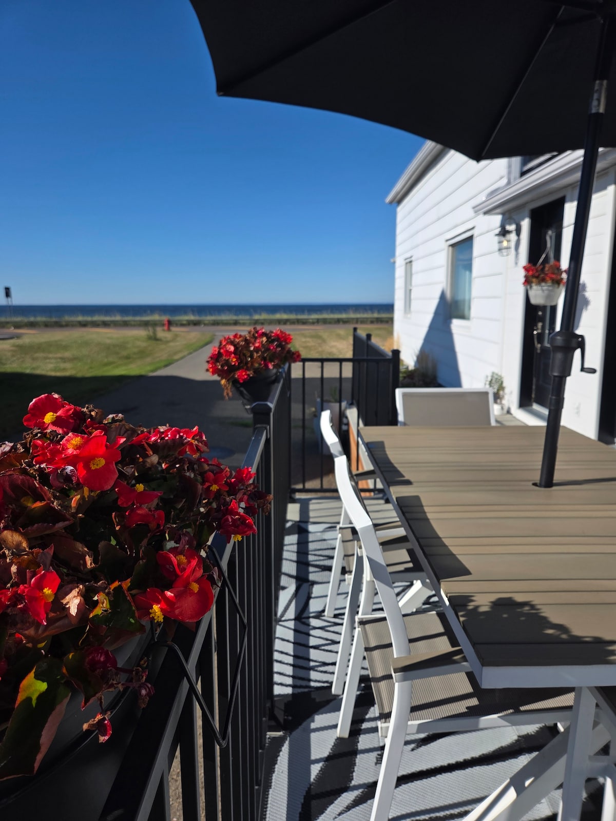 Este nuevo hogar tiene la bahía de Chaleur y la playa en su puerta. El loft zen en el segundo piso tiene un gran patio con vistas panorámicas de 180 grados de la bahía, la playa y los alrededores. Este lugar es perfecto para ir a la deriva en una tumbona, con el sol y los olores y sonidos del agua salada, ver espectaculares amaneceres y puestas de sol o acurrucarse con un libro de la biblioteca personal del propietario, un café o un vino en la mano. Aquí, relajarse es natural.