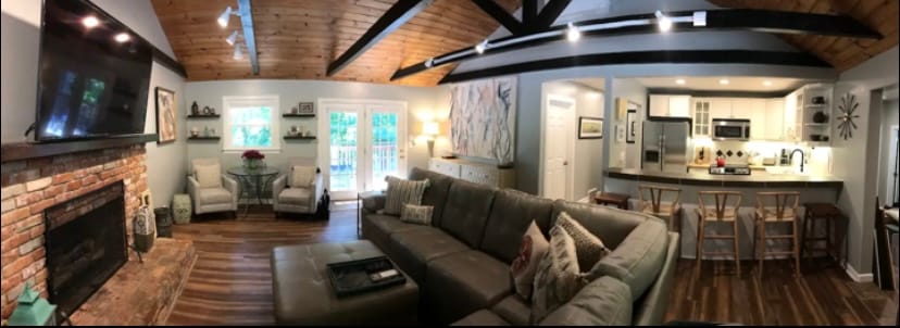 Disfrute de su relajante estudio cabaña en el río Linville. Usted disfrutará de una cama tamaño queen, WiFi gratuito, Smart TV (w/cable premium), chimenea, cocina totalmente equipada y lavadora/secadora. La cama principal es una reina, pero hay un sofá cama para acomodar a invitados adicionales. Usted puede acomodar cómoda y fácilmente a 4 personas. Te proporcionaremos las sábanas, almohadas, mantas y toallas que necesitas para que tu estadía sea cómoda y placentera.
