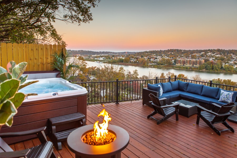 Rhythm&Views es el lugar de retiro de Cincy escondido entre los árboles en la ladera del monte Adams, con vistas al río Ohio. Relájate en el jacuzzi, celebra con amigos en la enorme terraza mientras ves pasar los barcos, acércate al fuego y disfruta del amanecer y la puesta de sol sobre el agua. A poca distancia a pie de todos los bares, tiendas y restaurantes de Mt. Adams, ¡cerca del centro de la ciudad! Este tesoro aislado se encuentra justo en la ladera, accesible solo a través de los escalones de la ciudad, así que tenlo en cuenta, pero vale la pena el viaje.