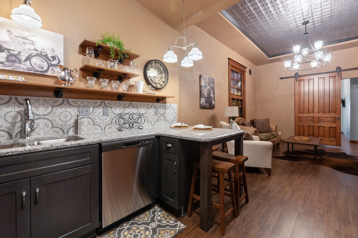 ¡Ven a alojarte en un pedazo de historia de Kechi! Esta casa de campo fue una vez una tienda de antigüedades cuando Kechi fue nombrada la Capital de las Antigüedades de Kansas. A principios de la década de 2000 fue renovada y convertida en una encantadora casa de 2 dormitorios y 1 baño. Ubicada en un barrio tranquilo, lo suficientemente lejos de la ciudad. Ven a experimentar la vida en una pequeña ciudad y todo lo que Kechi tiene para ofrecer. Mañanas tranquilas y tardes llenas de diversión te esperan en esta experiencia única. ¡Cocina completa, habitaciones amplias, acogedor porche delantero y trasero, juegos familiares y una cafetería!