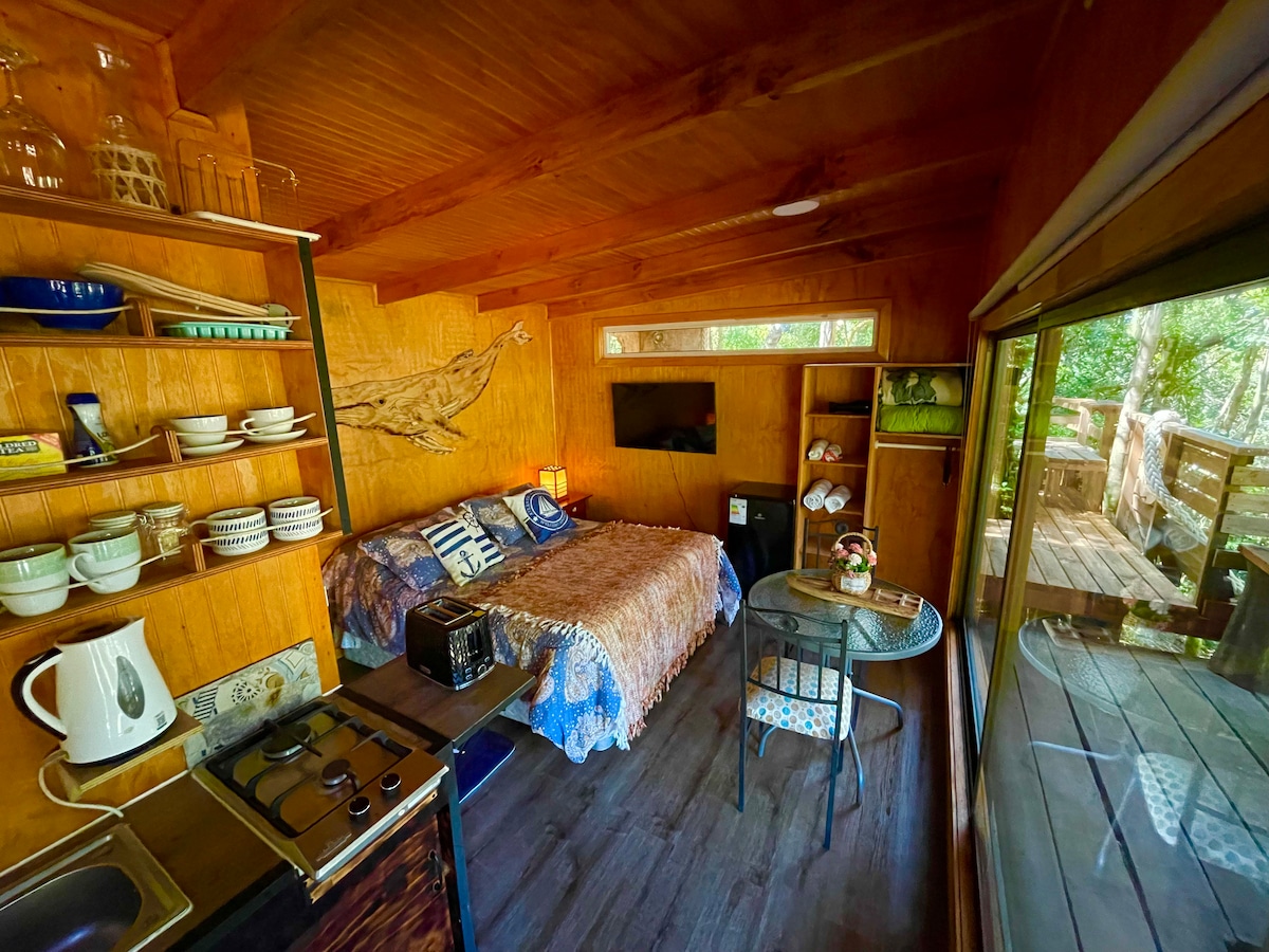 Descubre nuestras acogedoras cabañas boutique, en el corazón del bosque Valdiviano. A solo 15 minutos de Valdivia, relájate con familia o amigos en una tinaja caliente privada en una terraza techada con vistas a los ríos Valdivia y Tornagaleones Explora nuestros senderos y accede al río Cutipay para disfrutar de kayak, SUP o vela. 🌿 Perfecto para quienes buscan privacidad, descanso y conexión con la naturaleza. ¡Tu escapada ideal te espera!