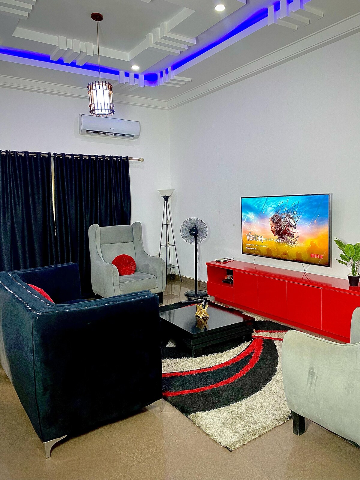Morak Homes es un oasis en una ciudad concurrida, nuestra casa moderna, inteligente, hermosa, luminosa, de 4 dormitorios es perfecta para familias discretas, parejas o amigos que buscan una estancia tranquila y entretenida. El interior diseñado con buen gusto te proporciona un entorno sereno y cómodo mientras visitas Abuja. La propiedad tiene una piscina, sala de juegos, billar, fútbol de mesa, PS5, Netflx, wifi rápido, DsTv. Todos los televisores son Smart.