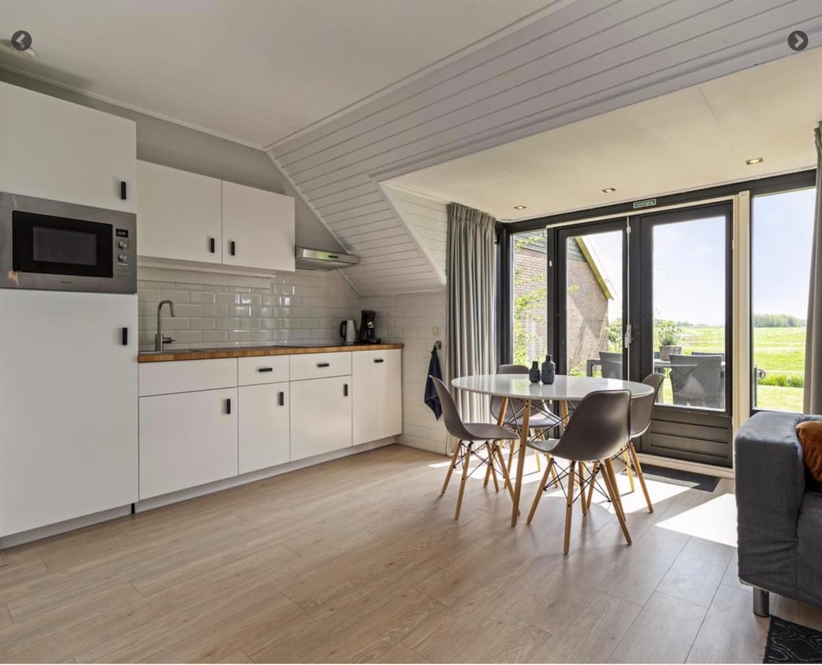 Bienvenido a nuestra exclusiva minicasa, escondida en un bosque privado a las afueras del encantador pueblo frisón de Noordwolde. Este moderno alojamiento es ideal para quienes buscan tranquilidad y para los amantes de la naturaleza. En verano, disfruta de tu amplio jardín privado con zona de estar, un porche y una hamaca entre los árboles. En invierno, puedes sentarte cómodamente junto a la estufa de le que calienta la habitación en un abrir y cerrar de ojos. La minicasa es compacta, pero está equipada con todas las comodidades.
