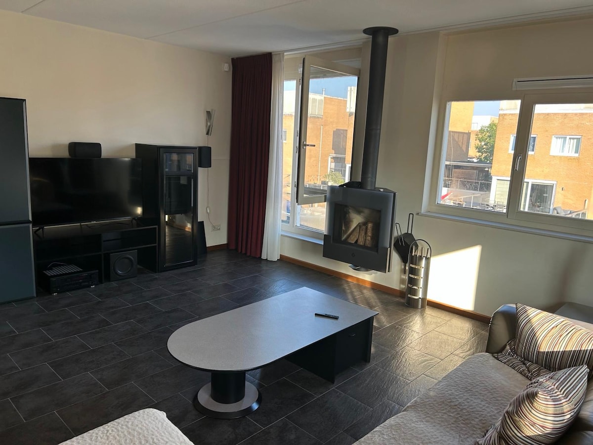 Amplio departamento en una ubicación única en el agua. 3 dormitorios para 6 a 7 personas. Amplia sala de estar con terraza contigua en la azotea con vistas al agua. 2 plazas de estacionamiento privadas frente a la puerta y a pocos pasos del bulevar y del centro de Harderwijk. Directamente sobre el agua y en pocos minutos en el bosque o en el brezal. El registro y la salida sin contacto son posibles. Se han seguido todas las pautas del RIVM para garantizar una estadía segura e higiénica.