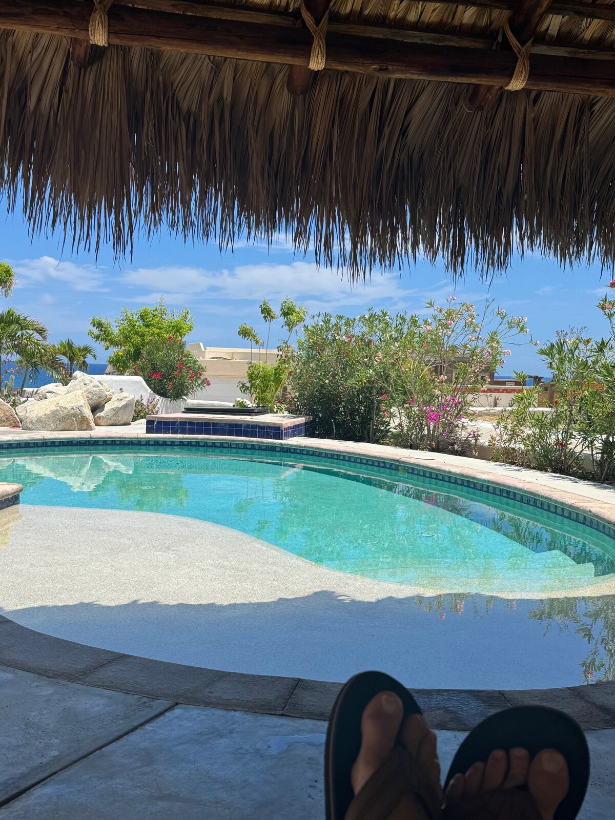 ⸻ Set in a secure gated oceanfront enclave on Cabo’s golden corridor, you will find a sunlit Mexican hacienda where classic charm meets Baja soul. Surrounded by native gardens and endless sky, this serene retreat features an infinity pool, hot tub, BBQ, and firepit. Enjoy barefoot days that begin with a spectacular sunrise and end with the moon rising over the Sea of Cortez. Every detail invites you to slow down, breathe deeply, and reconnect—with nature, with loved ones, and with yourself.