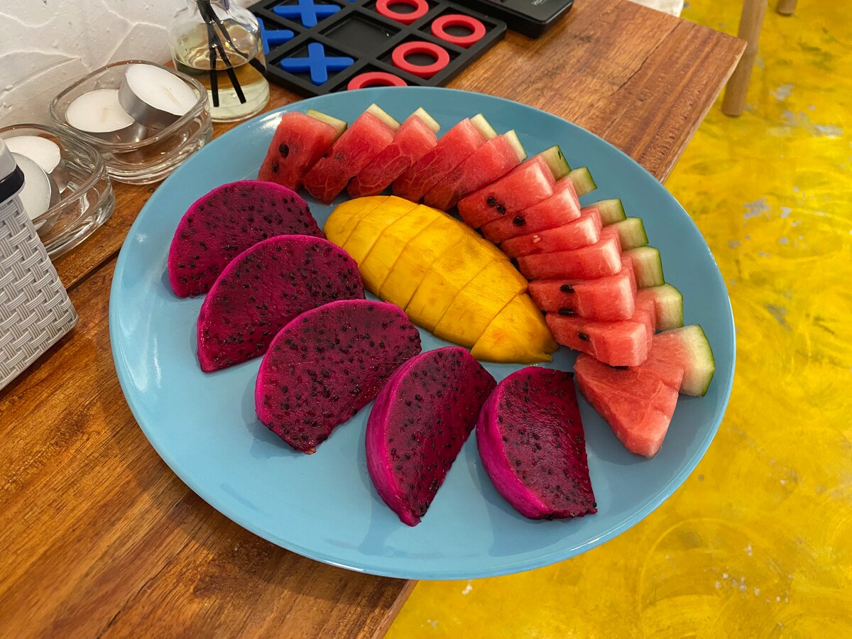 Somos el colorido mini centro vacacional que se encuentra en un sitio tranquilo y pacífico rodeado de montañas, a solo 1,4 km de la playa de Nopparattara y a 2 km de la playa de Aonang. Cada unidad en nuestro centro vacacional es una villa independiente y privada,con 2 dormitorios, 2 baños, máximo 4 personas por villa. Ideal para parejas, grupos o visitantes familiares. La unidad en el complejo de la villa cuenta con aire acondicionado,una zona de estar,una televisión plana con canales por cable,un comedor, una cocina equipada con microondas y tostadora.
