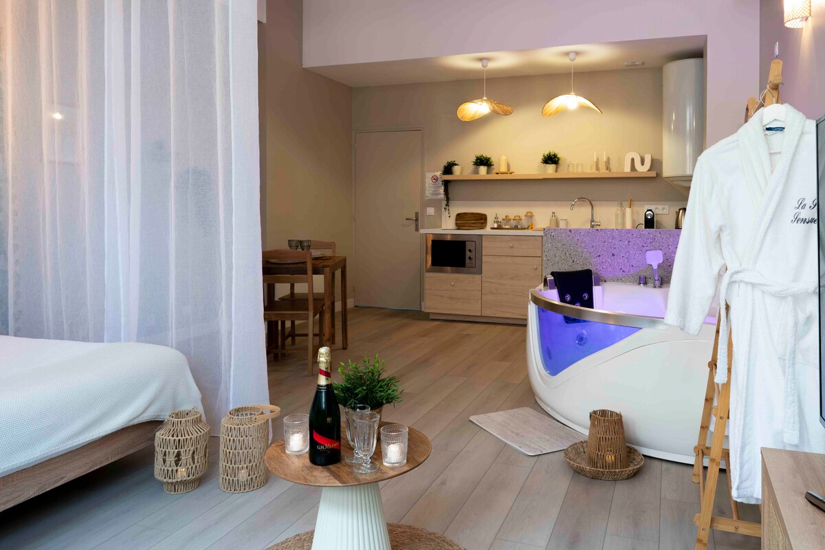 Bienvenido a este lugar donde el despertar de todos sus sentidos alcanzará su máxima expresión: -> Terraza con vistas DIRECTAS al RÍO Loing -> BALNEO con CROMOTERAPIA -> SAUNA -> Una GRAN CAMA de capullo -> TODO LO NECESARIO para relajarse PROPORCIONADO POR DUPLICADO: champú, gel de ducha, jabón, vaso, toalla pequeña y grande, albornoz, té, café, cafetera Nespresso de nueva generación, etc. -> Ideal para ANIVERSARIO DE BODA, ROMANCE, SPA -> WIFI -> 15 minutos a pie de la estación de tren -> 3 minutos a pie del centro de la ciudad