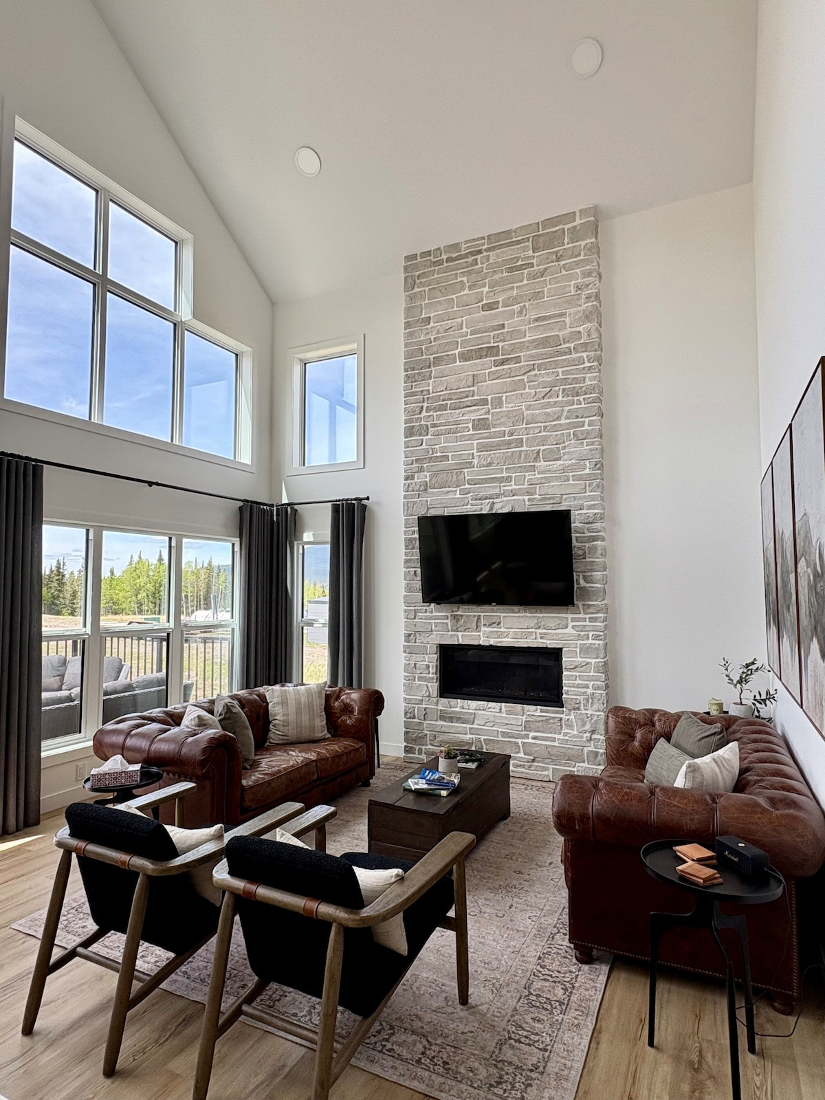 Coal Cabin es una casa NUEVA ubicada en una hermosa parcela de 1 acre en North Nordegg. Cuenta con preciosos techos abovedados de cedro auténtico en la sala de estar principal, enormes ventanales orientados a la montaña, terraza orientada al sur, zona de chimenea, sauna y mucho más. Cuenta con un pequeño loft súper divertido en el que a los niños les encantará jugar, ubicado en uno de los dormitorios. Los calentadores radiantes mantienen el suelo del sótano caliente bajo los pies. Hay una amplia sala de recreo con una mesa de tejo y una bonita zona de televisión.