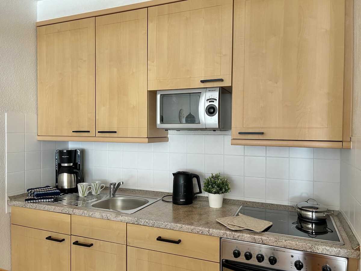 Este apartamento de vacaciones en el primer piso de una casa unifamiliar consta de un dormitorio para tres personas, una cocina con electrodomésticos nuevos, una acogedora sala de estar y un baño con ducha, inodoro y lavabo. Desde el salón se accede a un balcón. En el jardín, los huéspedes tienen a su disposición una terraza independiente con barbacoa. A poca distancia a pie de la localidad de Hage se encuentran tiendas, pequeños comercios, restaurantes, médicos, una farmacia y un servicio de alquiler de bicicletas.
