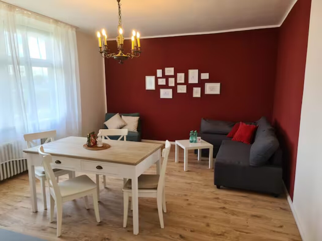 Acogedor apartamento con una decoración cálida. Hay disponibles cafetera y hervidor de agua, así como tostadora, una placa de cocción de 2 fuegos y una nevera. Hay un vestidor disponible. ¡Ubicación rural! Muchas actividades de ocio cerca, para los niños el Rastiland, el Wisentgehege. El Harz, el lago Steinhuder Meer y el Weserbergland son rápidos y fáciles de llegar. Un establo de caballos justo al lado de la casa, así como hermosas iglesias de monasterios..... ¡En resumen, un lugar para soñar!