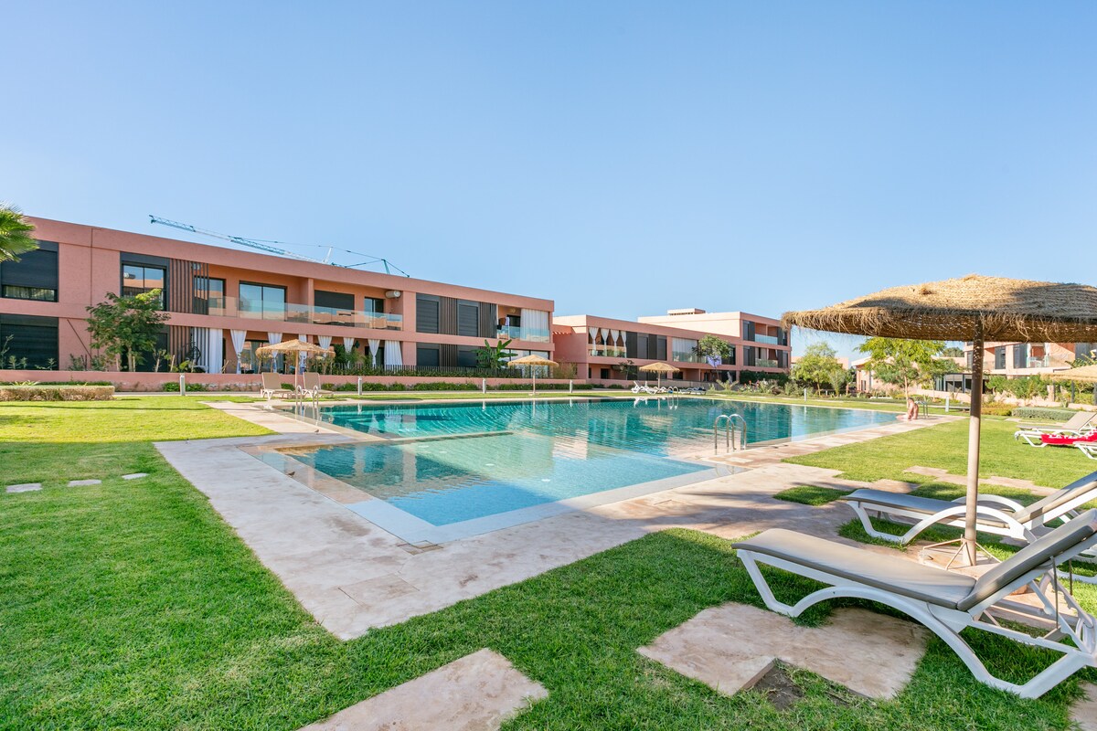Marrakech Luxury 2BR Vista a la piscina/Terraza/Trabajo remoto