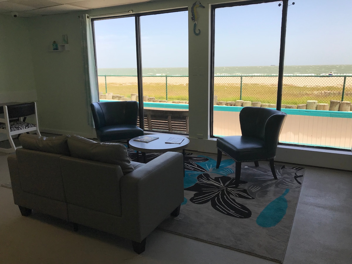 Esta es una propiedad frente a la playa en North Beach. Vistas al amanecer. Somos la única casa de playa en la playa. Está cerca (a 5 minutos en coche) del Acuario Estatal de Texas y del Museo de Lexington, o también puedes utilizar el paseo marítimo desde fuera de la casa hasta el final. La zona de pesca y la zona de juegos están a poca distancia a pie. ¡Un lugar estupendo para disfrutar del sol y la playa! Esta casa está limpia y lista para disfrutar de tus vacaciones. Tenemos otra casa al otro lado de la calle para alojar a más huéspedes, hasta 8 más, envíame un mensaje.