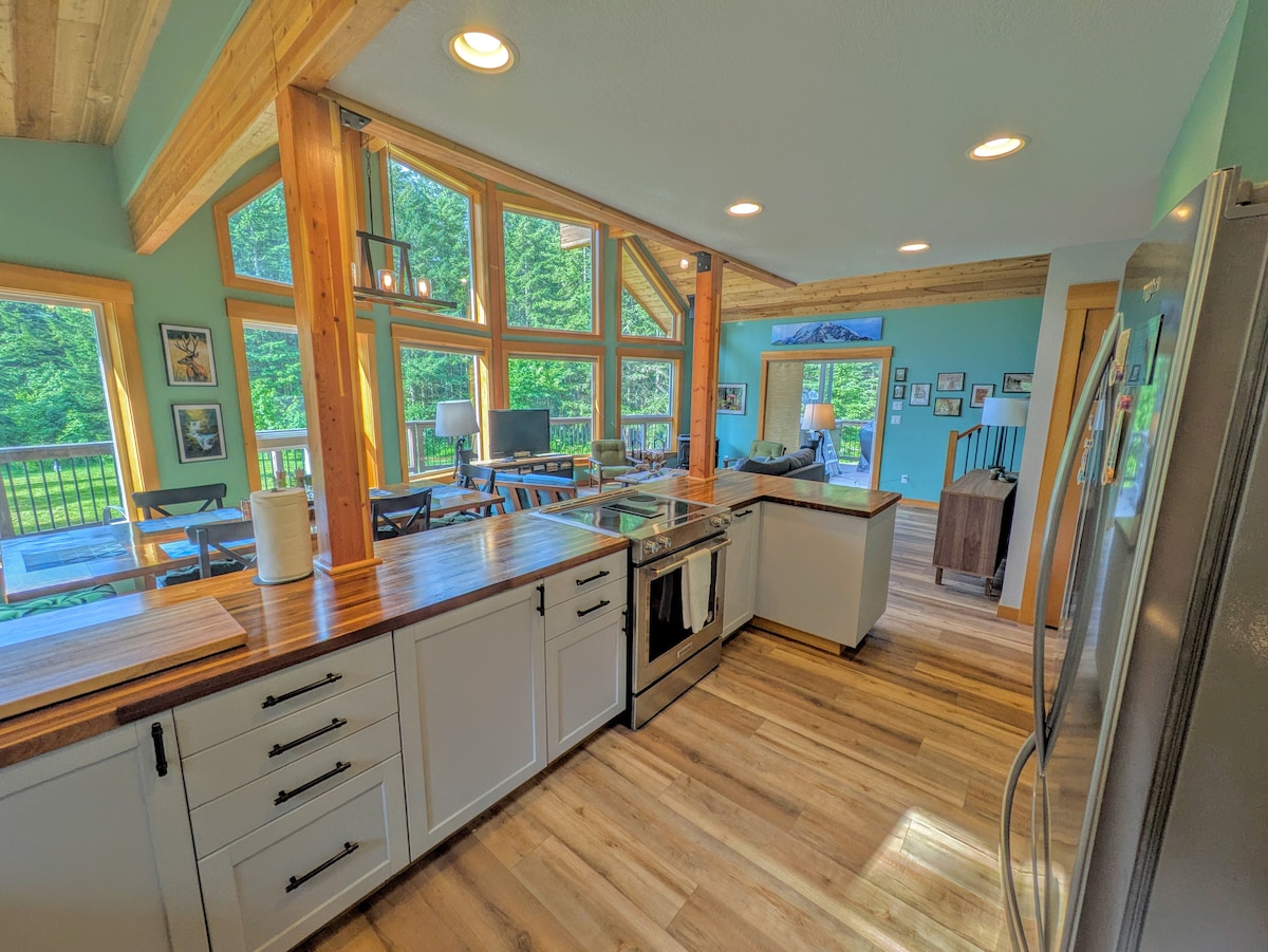 ¡Este bungalow elegante y único se encuentra en 4 acres de terreno aislado (sin vecinos)! Tu acceso privado al río (con playa de arena) es el lugar perfecto para hacer una fogata, beber tu café por la mañana o descansar al sol. Independientemente de la temporada, tú y tus invitados disfrutaréis del gran porche con impresionantes vistas al monte Hood, el río Salmon, todo en un entorno de parque. El lugar perfecto para retirarte, relajarte y crear recuerdos que nunca olvidarás. No se permiten eventos a menos que se confirmen con el anfitrión.