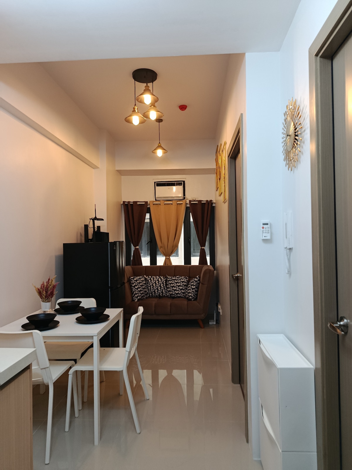 This is a 25sqm 1BR unit. Price set for 2 Adult, can accommodate upto 4 pax with P300 ENTRY charge each (there will be no extra beddings & bath items for the additional guests). Pls. follow "Clean as you go" & No smoking policy. No pets allowed. Your family will be close to local resto, express malls, & La Mesa Eco Park when you stay at this centrally-located place. Go to the roofdeck during sunrise & sunset. Enjoy the stunning city view (day or night), Sierra Madre mountain & the eco park.