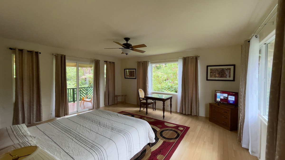 1Te va a encantar la sensación cómoda y acogedora de este lugar. Impresionantes vistas, paisajes únicos y caminatas, no muy lejos de la ciudad. Este dormitorio principal privado te permite un toque de lujo y relajación. ¡Hay un balcón completo accesible, así como un gran baño con jardín, muchas plantas y un maravilloso aire fresco de montaña! Pequeño desayuno proporcionado con tu estancia y tienes el uso total de la cocina si decides preparar tus propias comidas. ¡Haz de Pohala tu hogar lejos de casa!