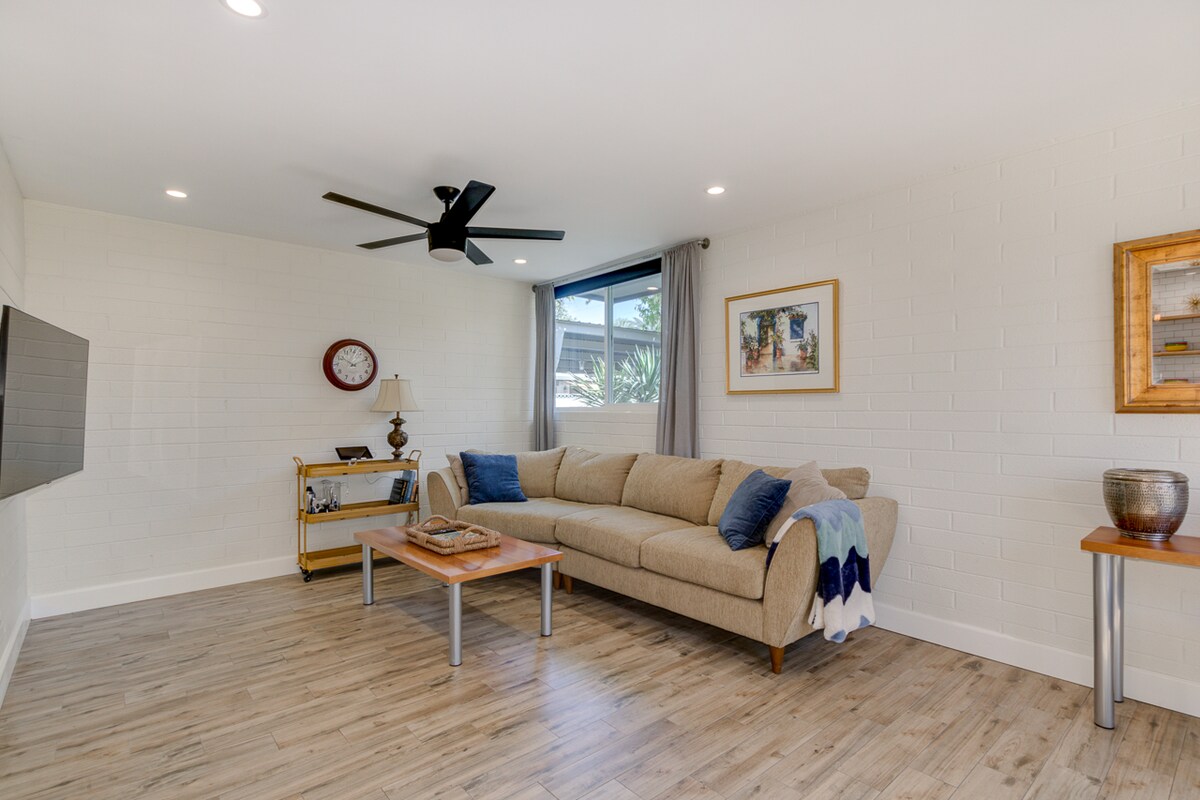 ¡Disfruta de impresionantes vistas sin obstáculos de 270° convenientemente ubicadas justo en medio del área metropolitana de Phoenix! Espectaculares amaneceres/atardeceres en una pintoresca comunidad de mediados de siglo en la cima de una colina, enclavada en la cordillera North Central Phoenix. ¡Date un paseo por uno de los muchos senderos recreativos mejor valorados cercanos o relájate junto a la piscina! 2 camas (king y queen), 1,5 baños. ¡Bicicletas de paseo y patinetes eléctricos con cascos disponibles para su uso! Mejoras recientes. ¡A poca distancia en coche de cualquier atracción importante de la ciudad!