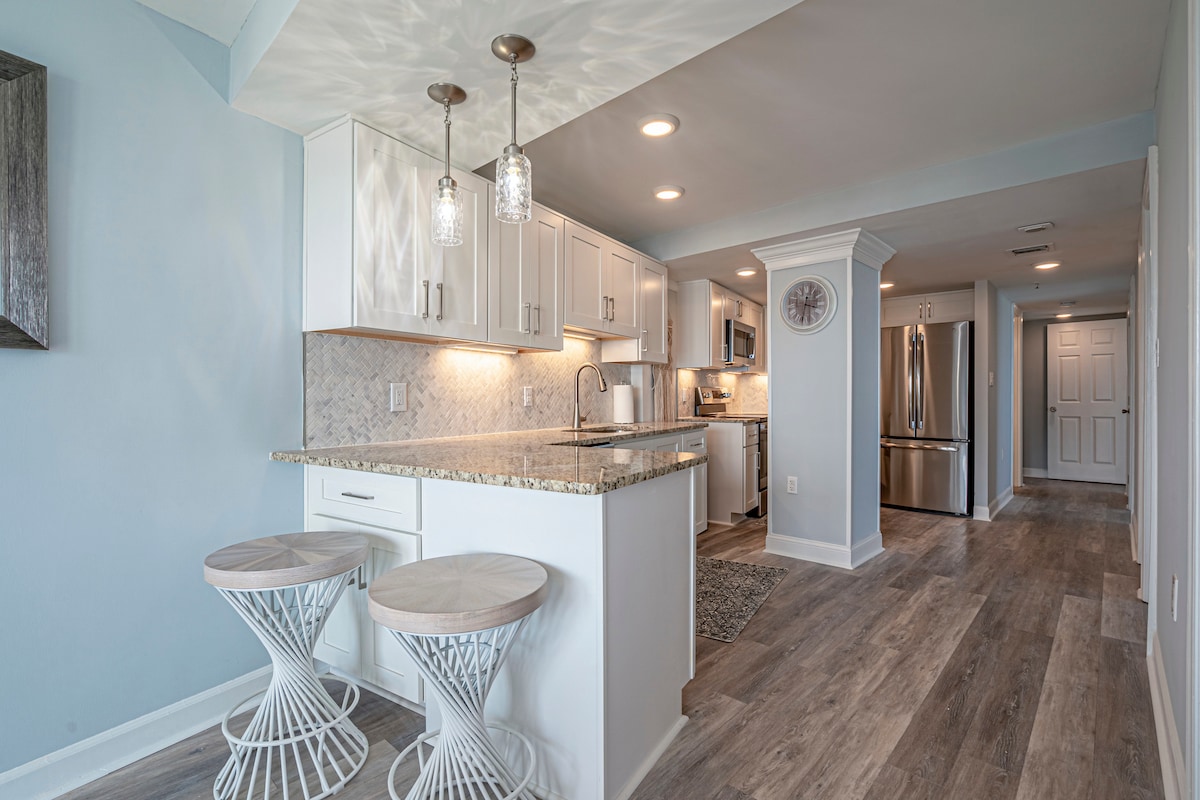 ¡Apartamento privado frente al mar en SeaWatch Resort! ¡Estamos en el quinto piso y tenemos un acceso sin llave muy fácil a nuestro apartamento! ¡Toma uno de los 4 ascensores hasta la planta baja y camina hasta una de nuestras piscinas o directamente a la playa! 🏖 ¡A unos pasos de la playa! - Se proporcionan 2 sillas de playa - Acceso a TODAS las piscinas/jacuzzis Cama de tamaño King. - Aparcamiento GRATUITO y cargadores de vehículos eléctricos disponibles - Lavadora/secadora dentro del apartamento