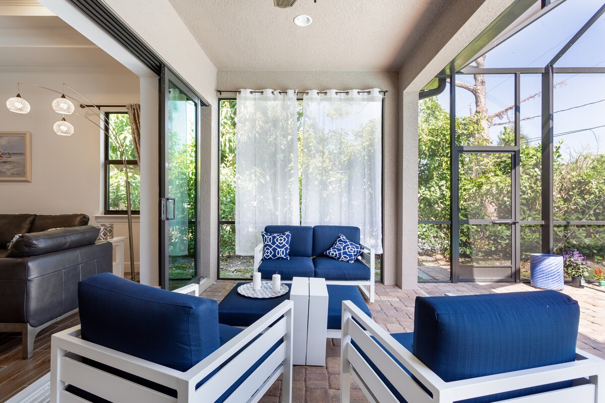 Bienvenido a nuestro Coastal Oasis, tu casa de playa recién renovada a poca distancia de la playa más hermosa de Naples. Entra en una gran sala de estar llena de sol donde puedes relajarte en el cómodo sofá o hacer un entrenamiento rápido en nuestro Peloton. La espaciosa cocina con una gran isla es perfecta para pasar el rato o preparar deliciosas comidas. La comodidad es lo primero, por lo que hemos invertido en colchones Tempur-Pedic para garantizar un descanso nocturno de calidad. Te damos la bienvenida a las vacaciones costeras que te mereces.